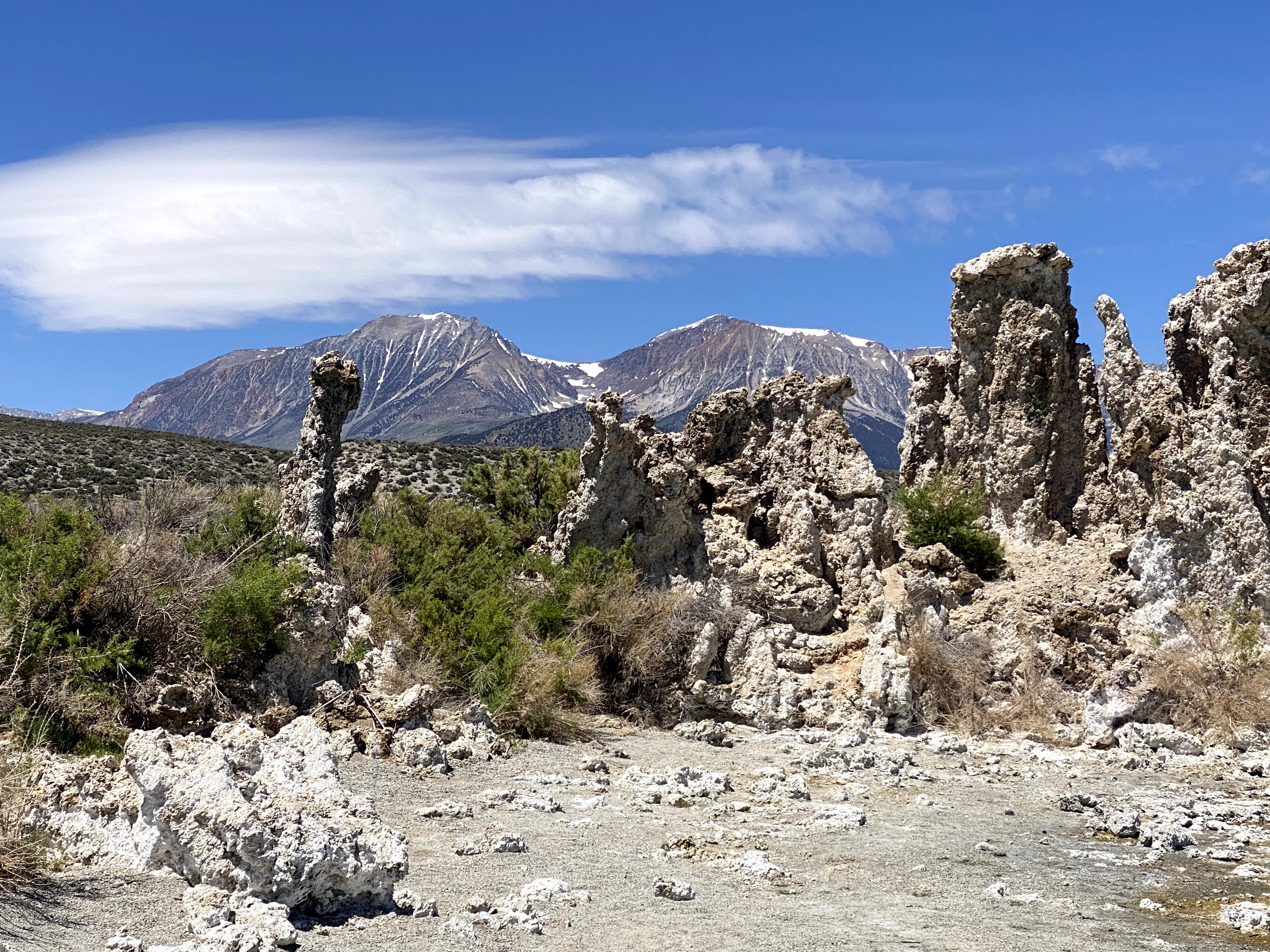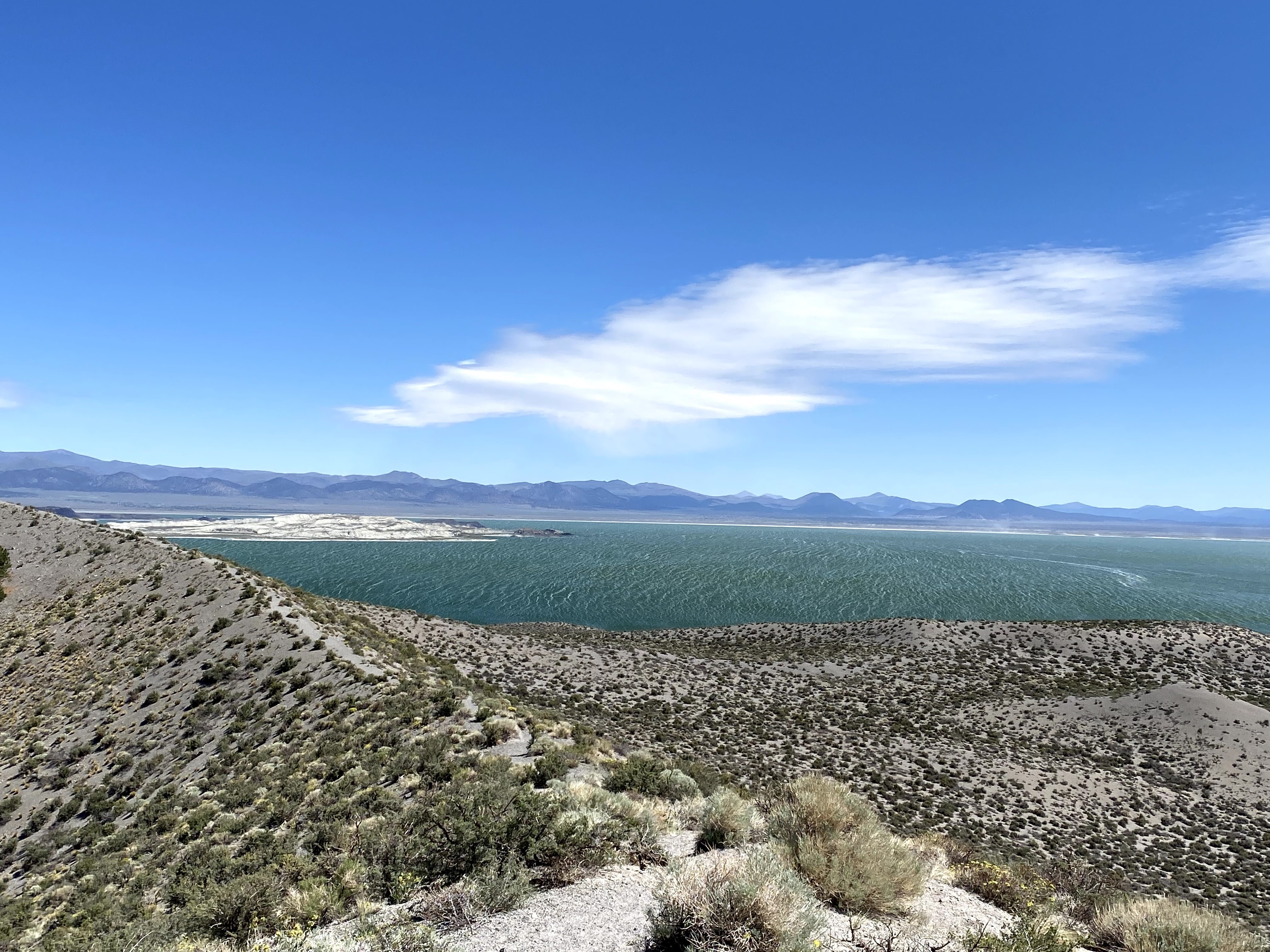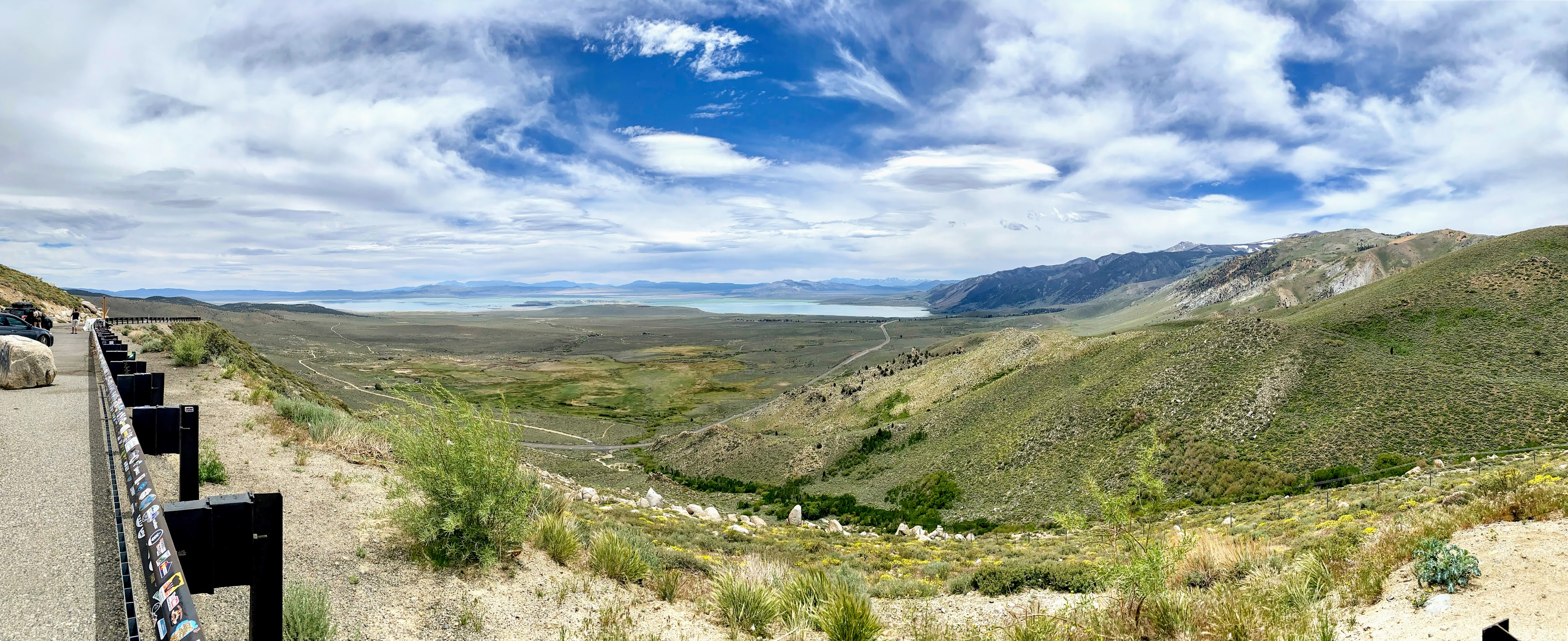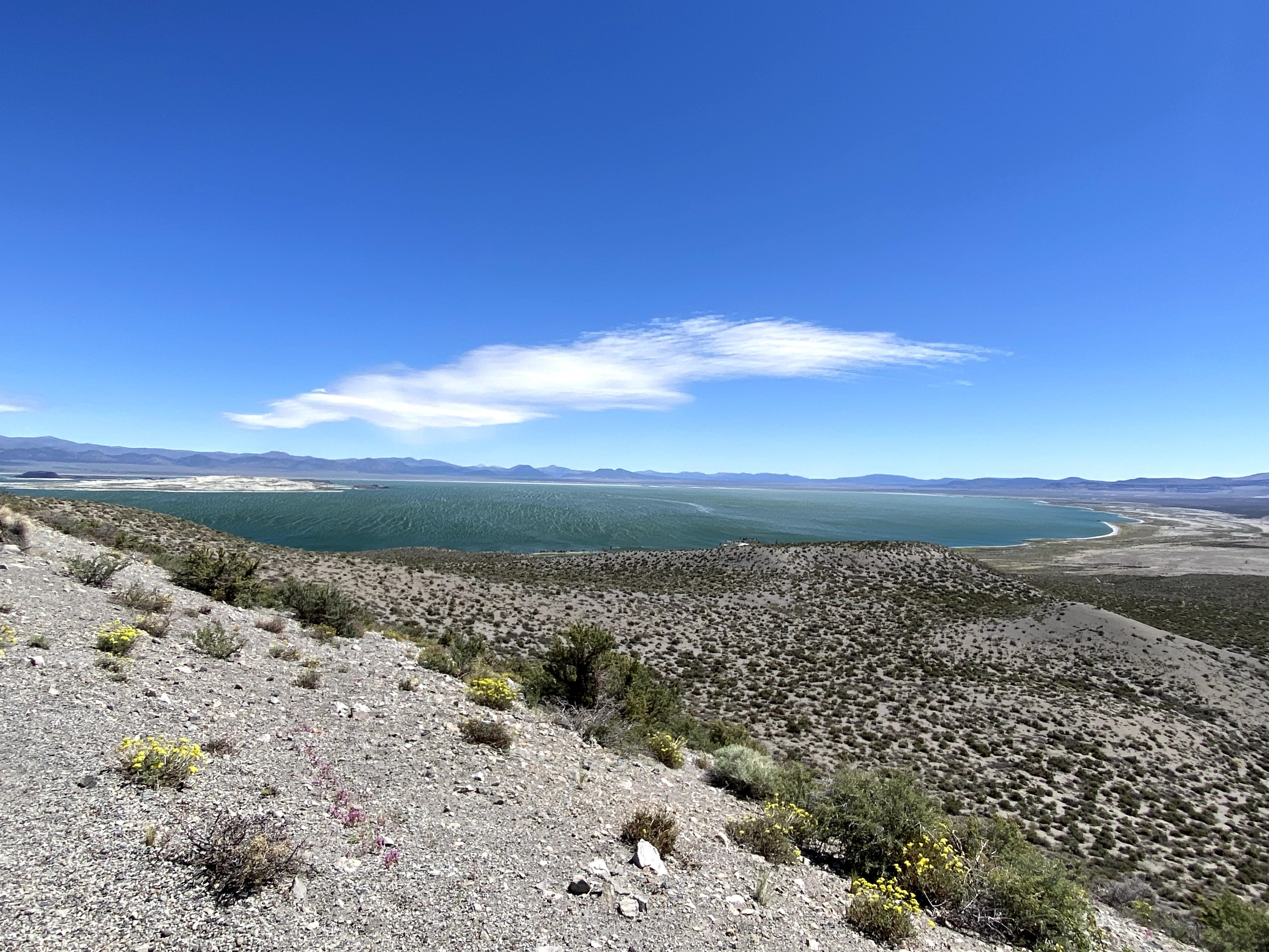 Safely on the Eastern side of the Sierras and happy to see the flat wide open spaces on HWY 395, I stopped at the Mono Lake overlook for a photo.