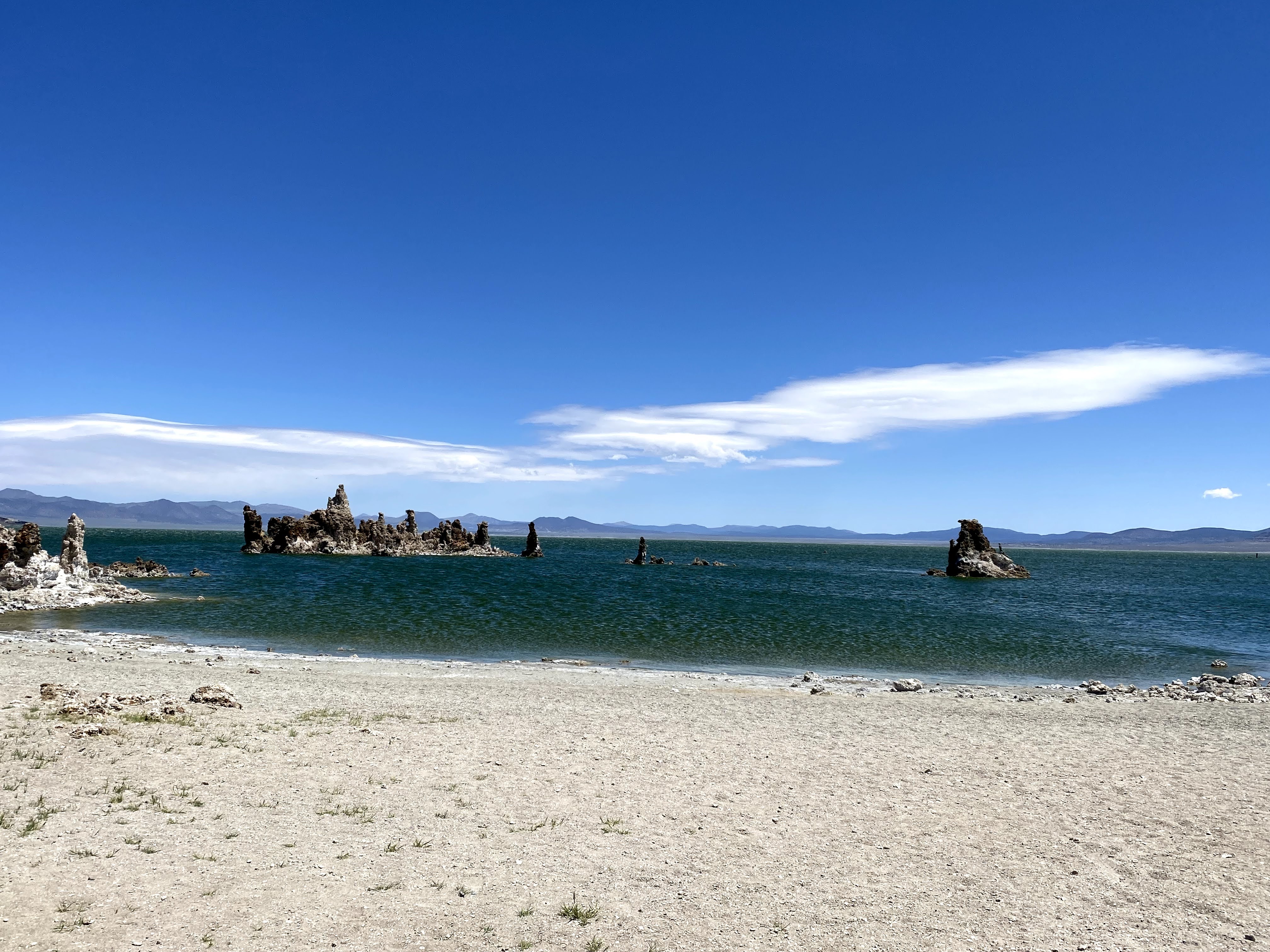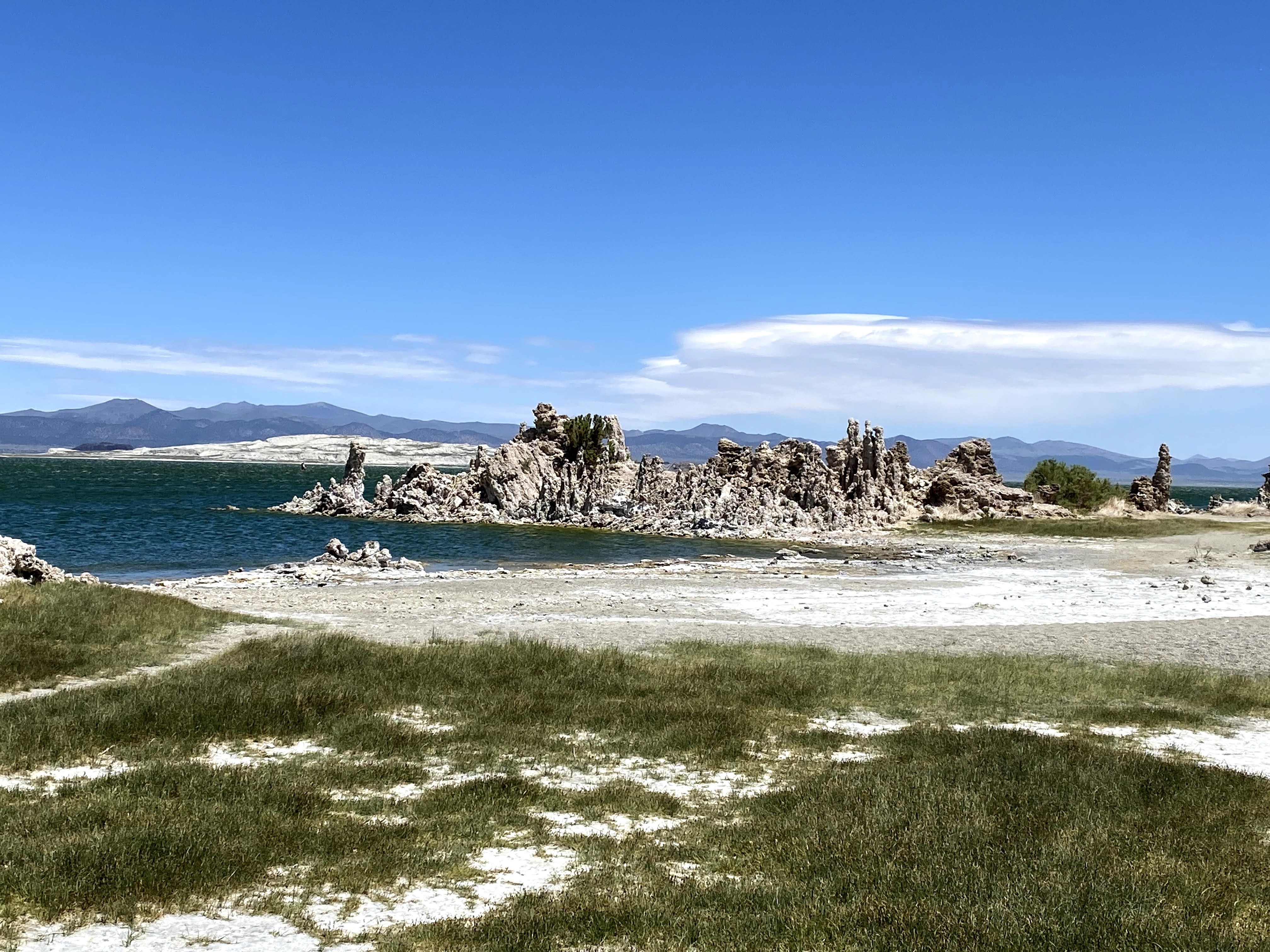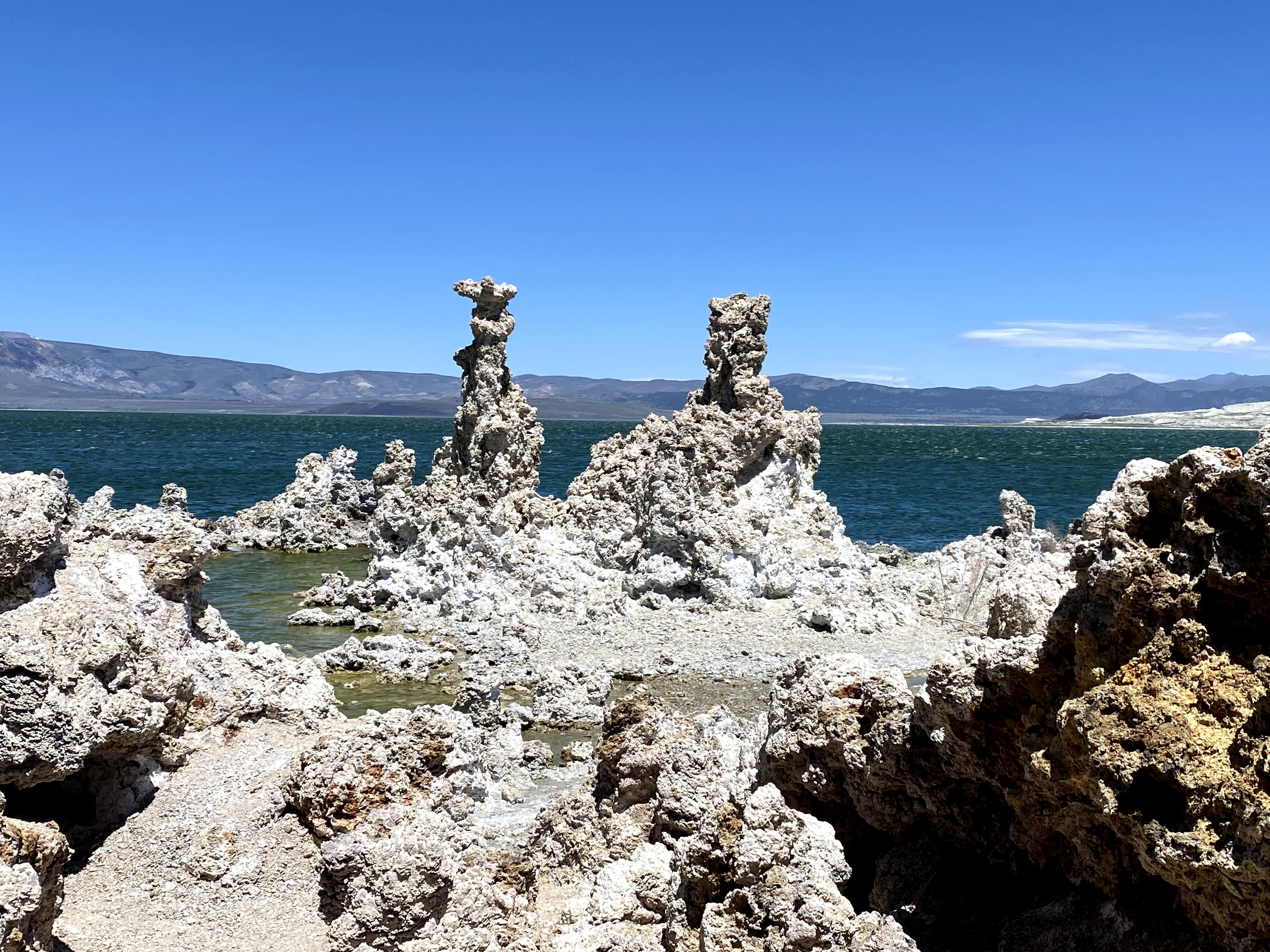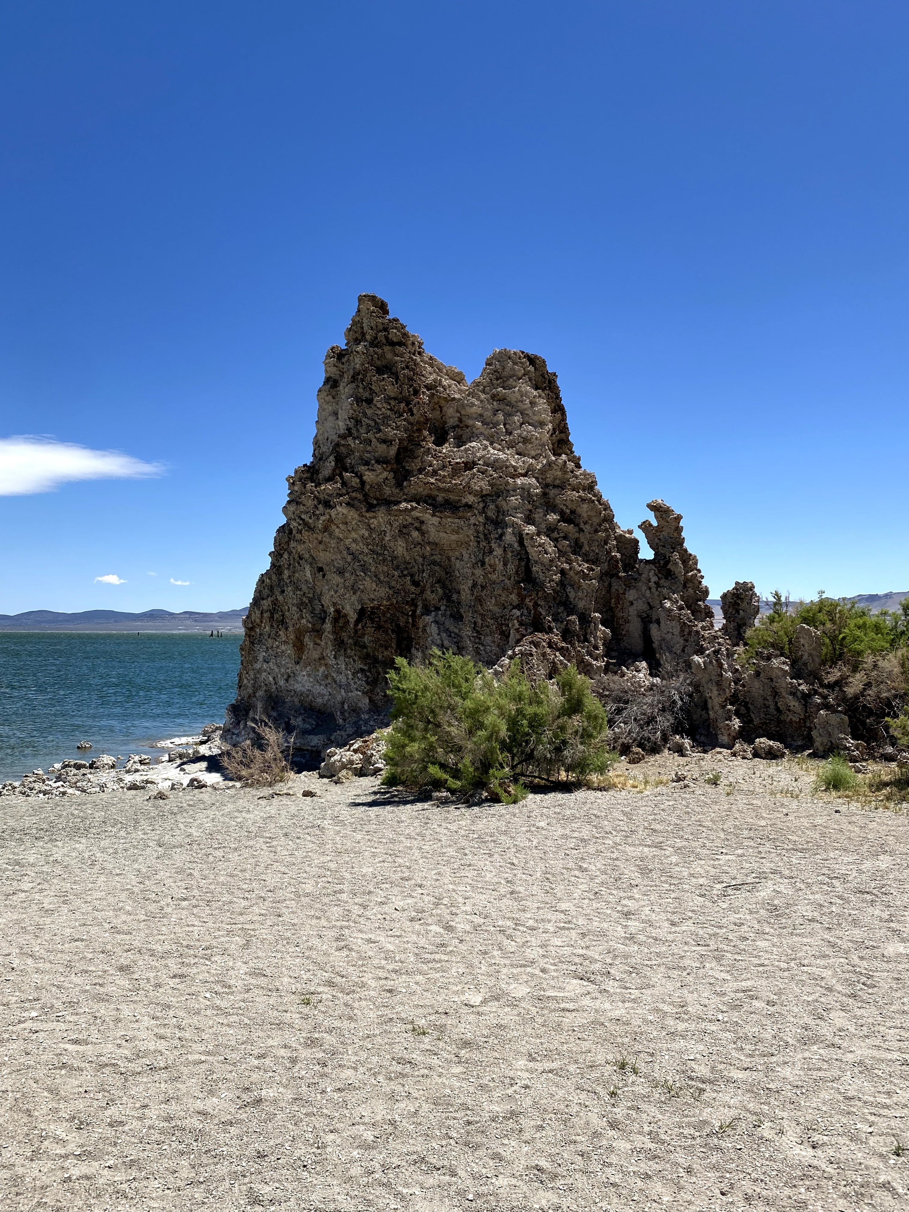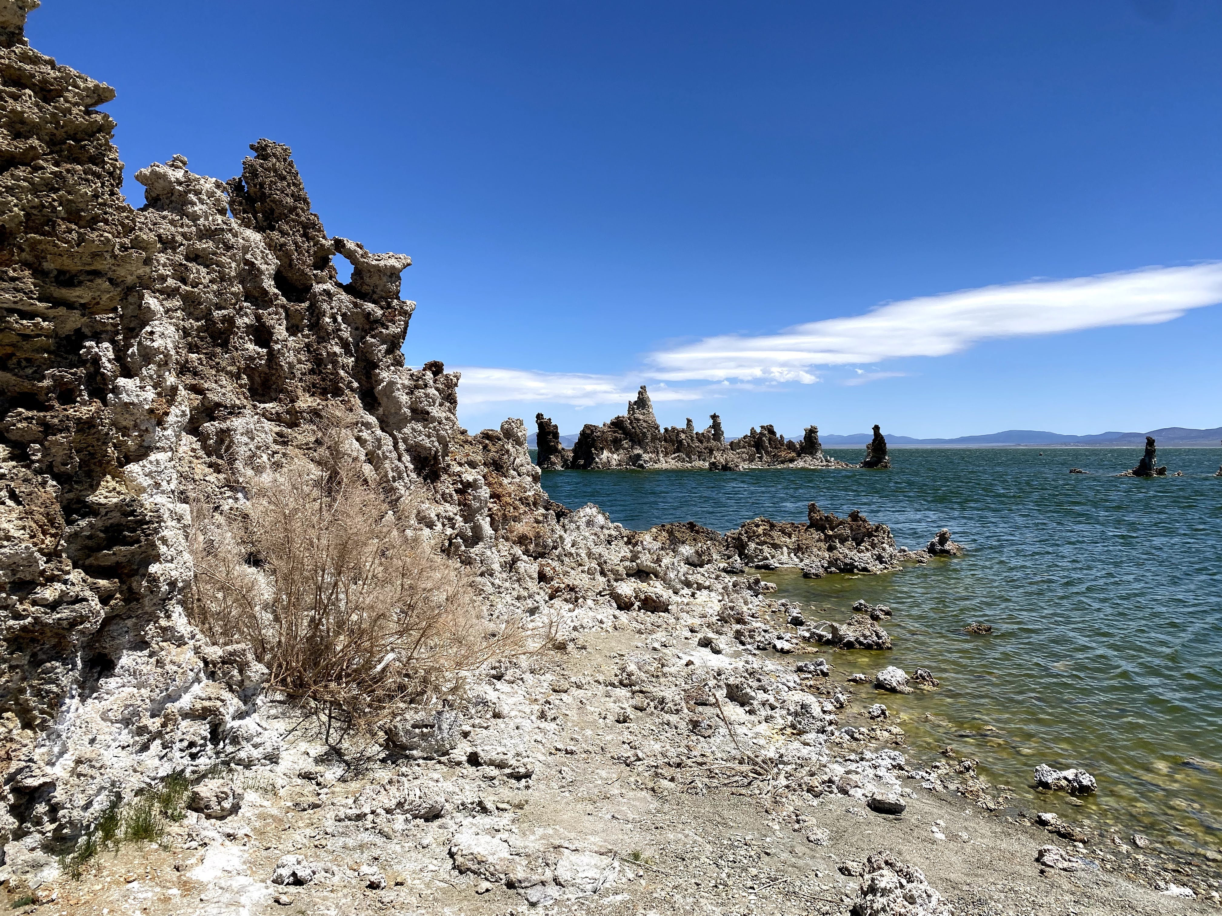 After a windy 45 minute hike around the crater, I followed the gravel road cross country to the South tufa trail visitor center. The self guided nature trail takes you thru the tufa and to the edge of the lake. A very easy hike on the loop trail, parts even have a boardwalk. I wasn’t aware that Mono lake is a relative to the Great Salt Lake in Utah. It is salty too, I tasted to confirm! On a warmer day it would be fun to swim in the lake and feel the increased buoyancy of such high salinity.