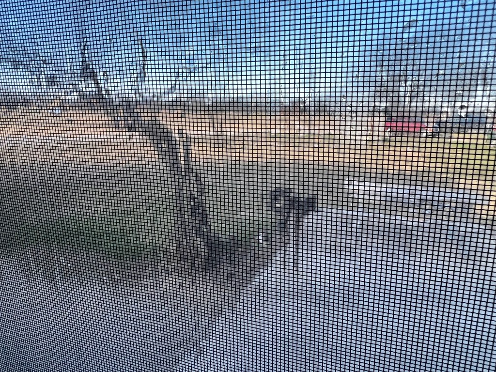 Overnight the temperature dropped down to 19 and using only the built in heater I was quite comfortable and able to maintain mid 60’s inside. I did find that the bathroom ceiling fan was allowing a lot of cold air in even with the hatch closed. To be fair the wind was blowing directly into the roof cover and forcing the chilly air into the RV. I fashioned a cover out by wrapping a beach towel in Refletix and stuffing it up into the opening and then sealing that in with a garbage bag using blue painters tape. This stopped the cold air and really made a difference in how often the heater came on to maintain temperature.