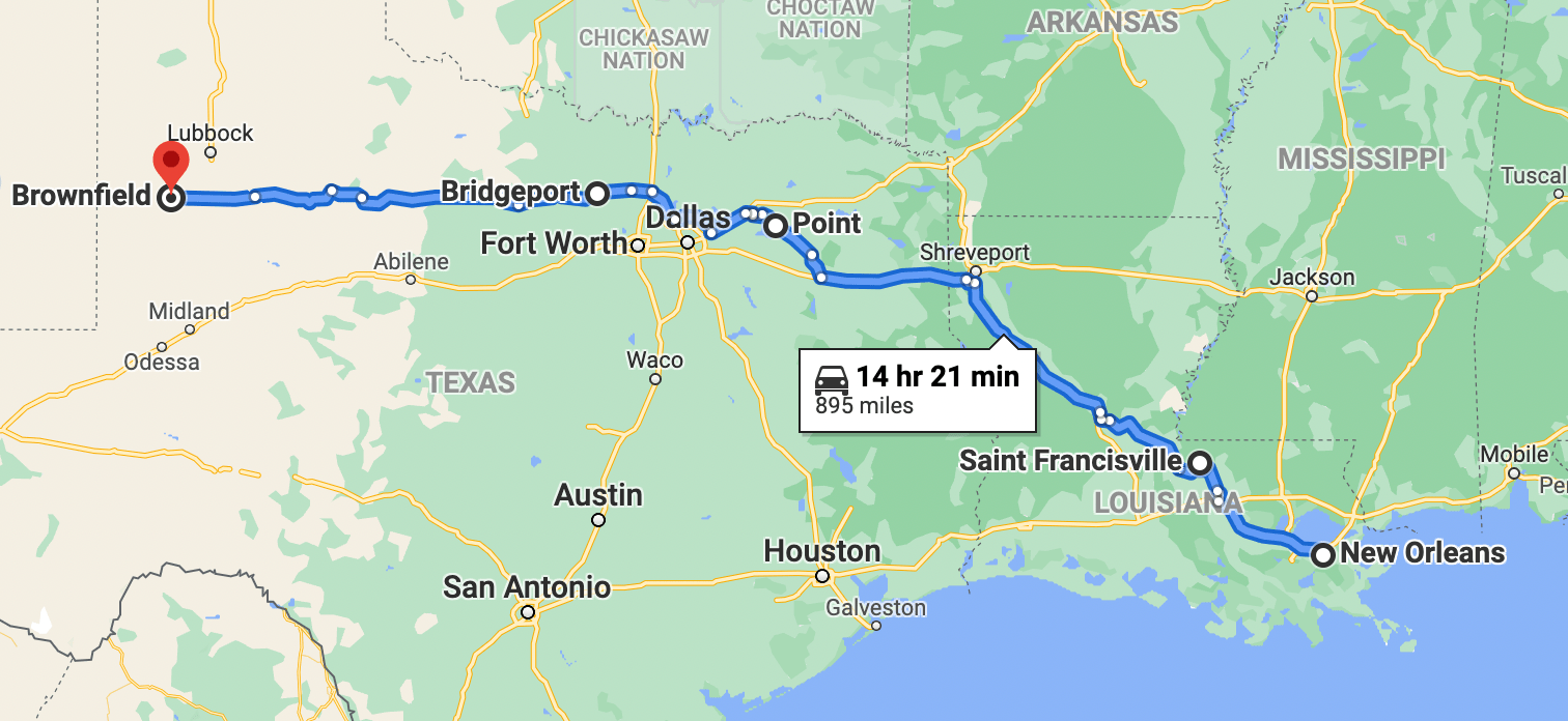 Not being troubled by any of the ghostly residents of the plantation I had a quiet nights sleep and hit the road early for the long 375 mile drive to my next stop in Texas. My Thousand Trails membership has zones and I had selected the Southeast as my zone meaning that Texas would be my last chance to stay for free with TT.