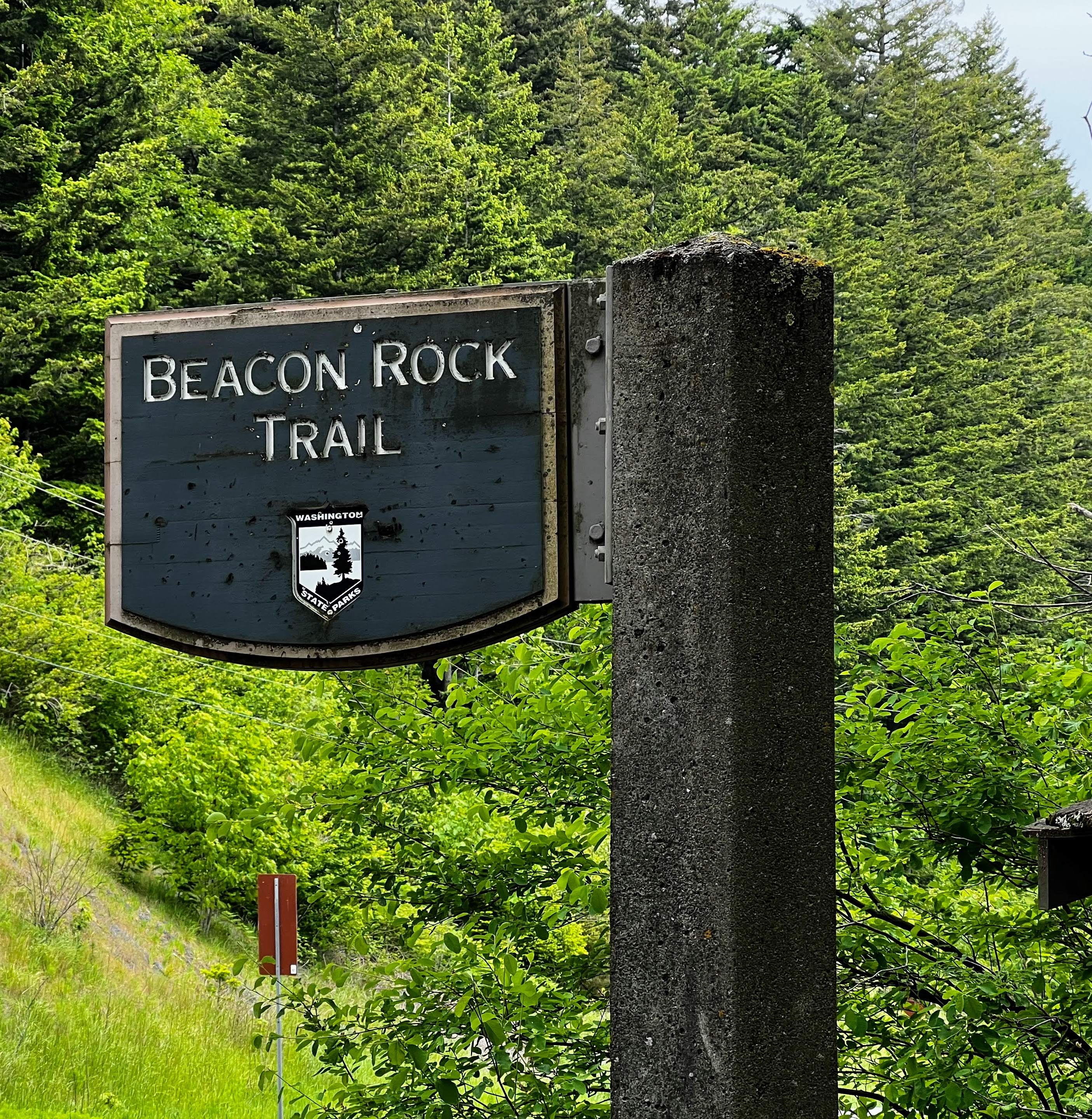 My next adventure was something I had been wanting to try but it required just the right day to ensure a pleasant experience. The hike at Beacon rock state park up to the top of 848ft high Beacon Rock should be done on a non-windy day. The Columbia river gorge being a natural wind tunnel makes this fairly infrequent. May 24th was just a perfect day, it was partially cloudy and very still as I parked and headed up the trail. Named by Lewis and Clark during their voyage of discovery this cool rock was something I wanted to experience.